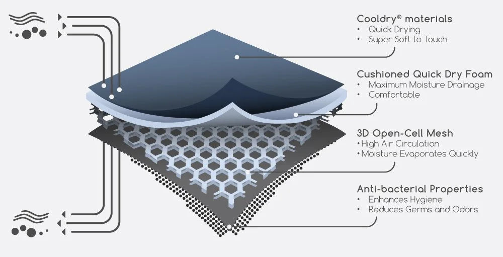 Made from a combination of soft, anti-bacterial Cooldry® fabrics and 3D breathable mesh, ensures optimal airflow to keep your child dry and comfortable while maintaining body temperature.